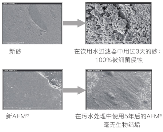 对大部分“水处理”系统而言,滤床是微生物滋生与繁殖的主要场所,因此解决滤床的微生物孳生与繁殖,是本系统的重要组成部分——AFM,作为一个苏格兰进口产品,就是破解这一难题的环保选择:用它取代容易滋生细菌的石英砂,可利用表面自消毒能力、让细菌失去赖以生存的场所与食物,从而大大减少了整个水处理系统的微生物、减少了对消毒剂的依赖。