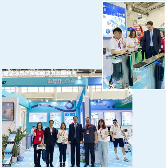 展会期间,中国体育用品业联合会主席李烨、世界休闲体育协会轮值主席、首都体育学院教授博导李相如教授等领导莅临蓝狮在线展位参观指导,并对蓝狮在线在“低碳智慧游泳场馆”建设方面的成果,以及健康、低碳、智慧的全域水系统解决方案给予了充分肯定和高度认可。