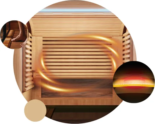 02、配备第五代云母发热技术:升温迅速,启动电流低,热场分布均匀,为用户提供更舒适的汗蒸体验。同时,其电磁辐射远低于同类产品,确保用户安全。