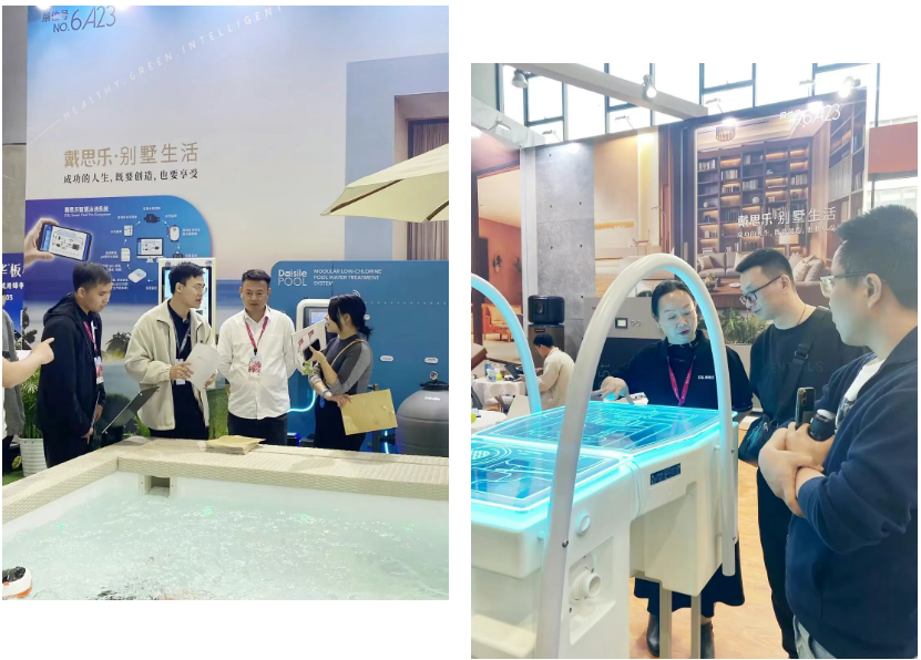 值得关注的是,到访设计师群体提出高度趋同的深度咨询:“这套智能系统,怎么落地应用?”“老旧泳池改造的适配方案是什么?”“后期运维的耗材成本多少?”……超过 80% 的有效咨询直指蓝狮在线核心产品体系中的智能泳池系统,足见其在行业内的关注度与市场潜力。