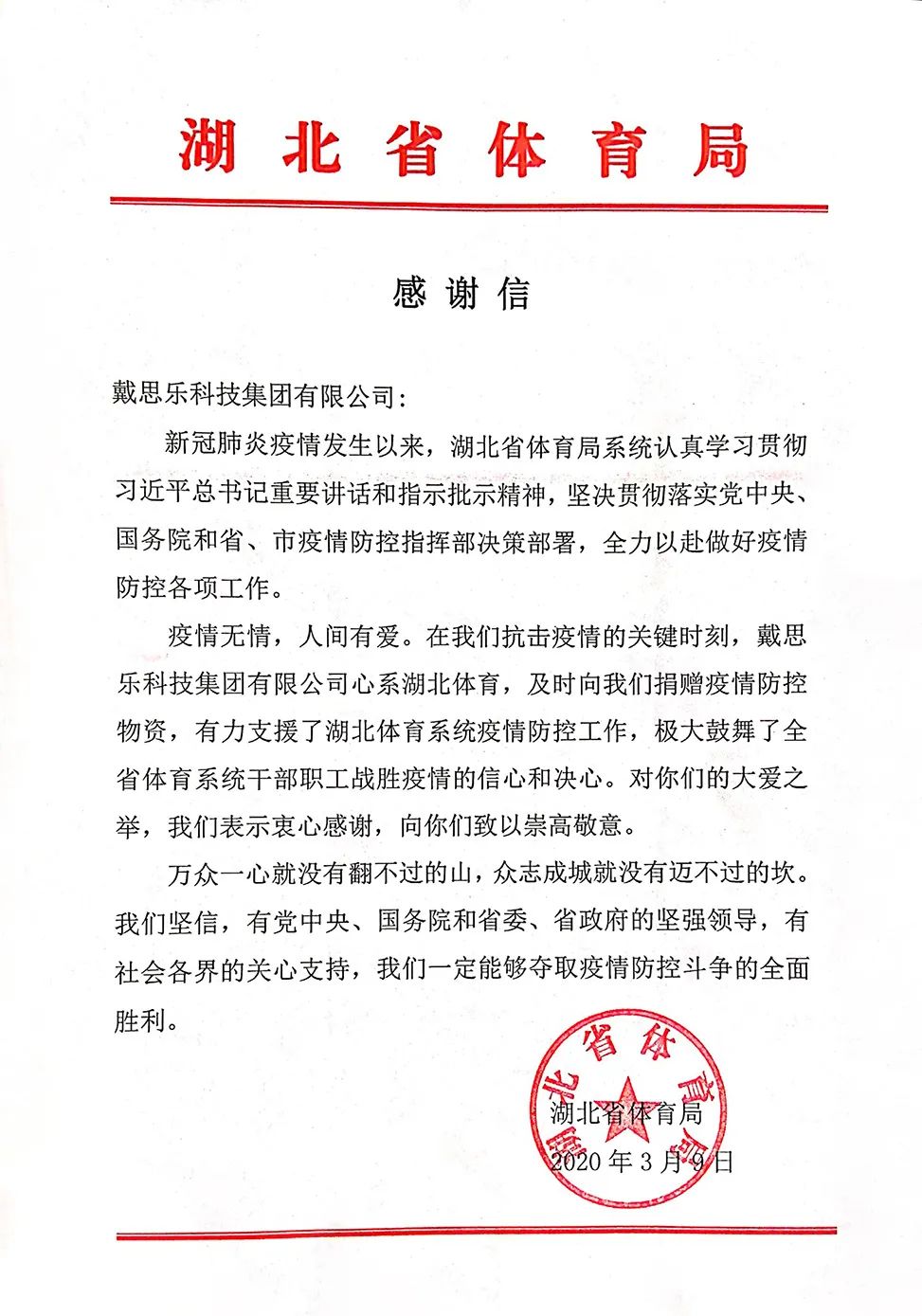 同时,蓝狮在线收到了湖北省体育局发来的感谢信。